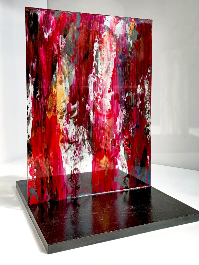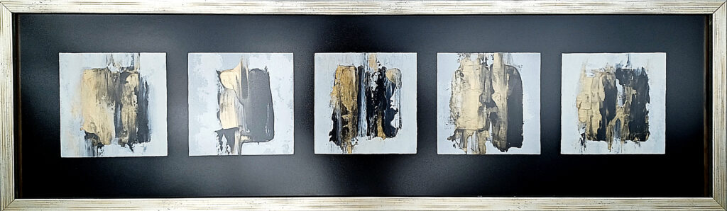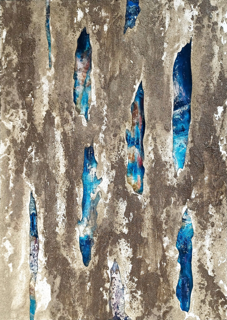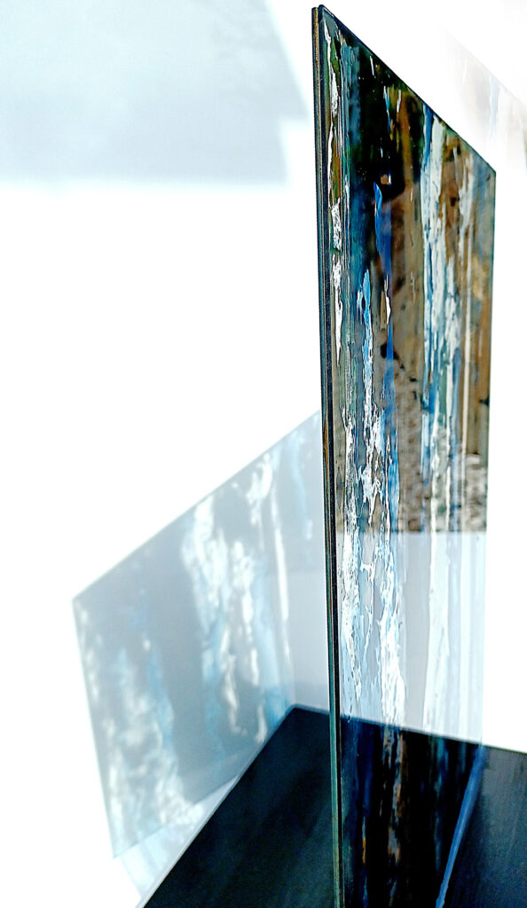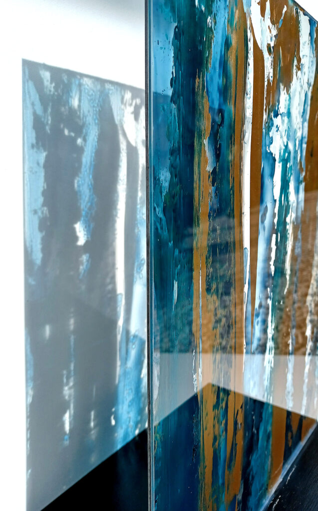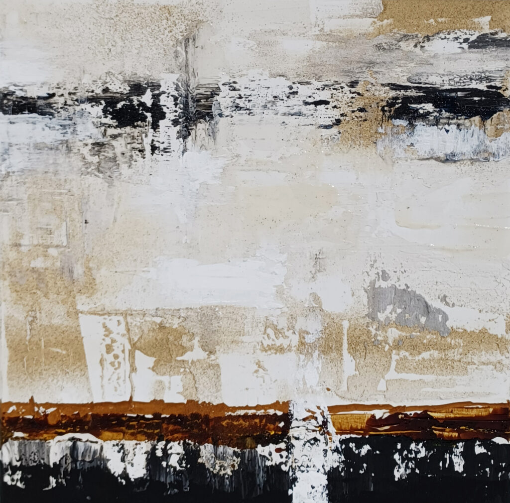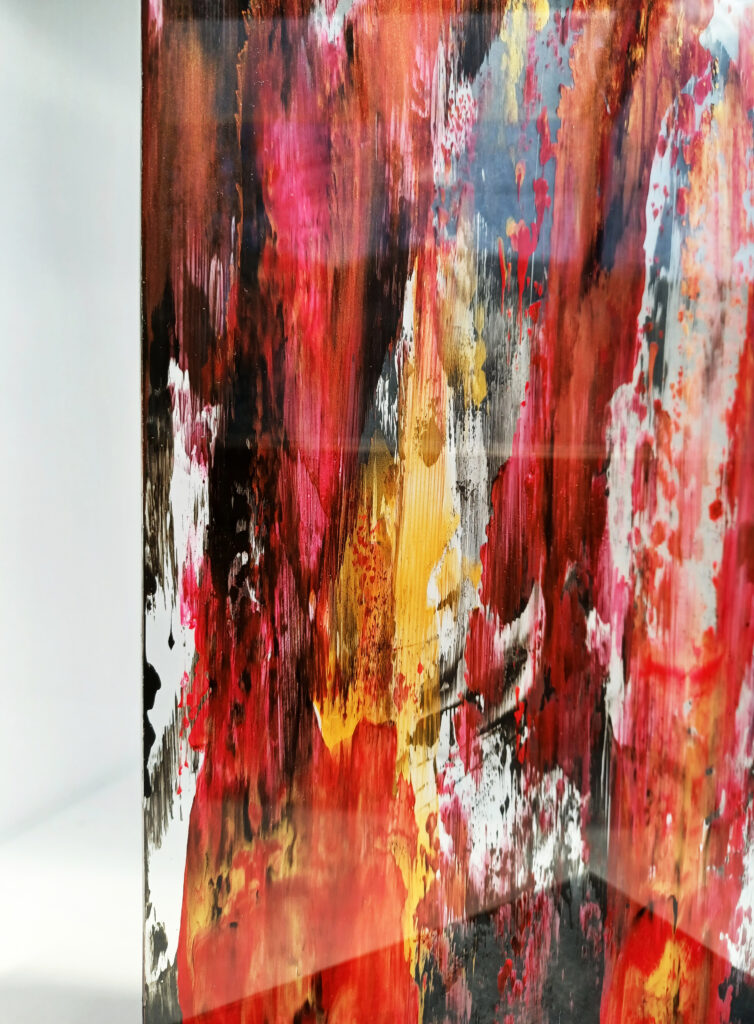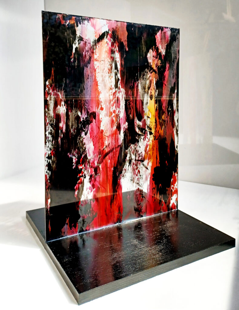 Technika: ásványpor, hamu, akril, arany pigment, plexi