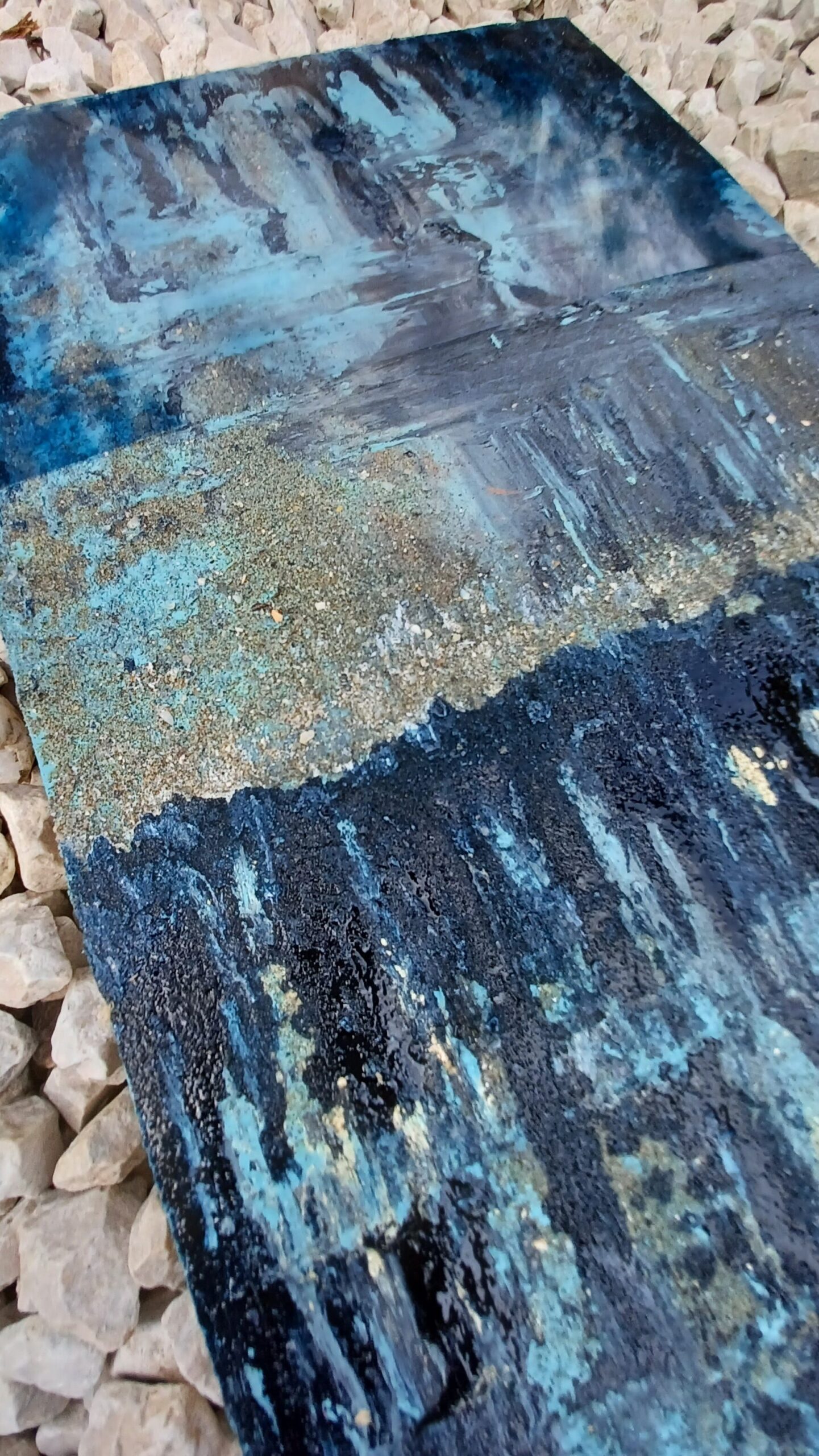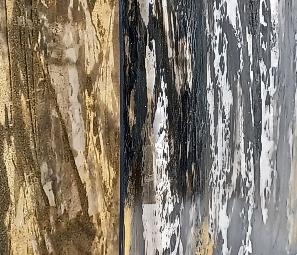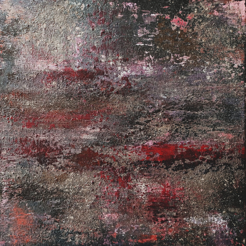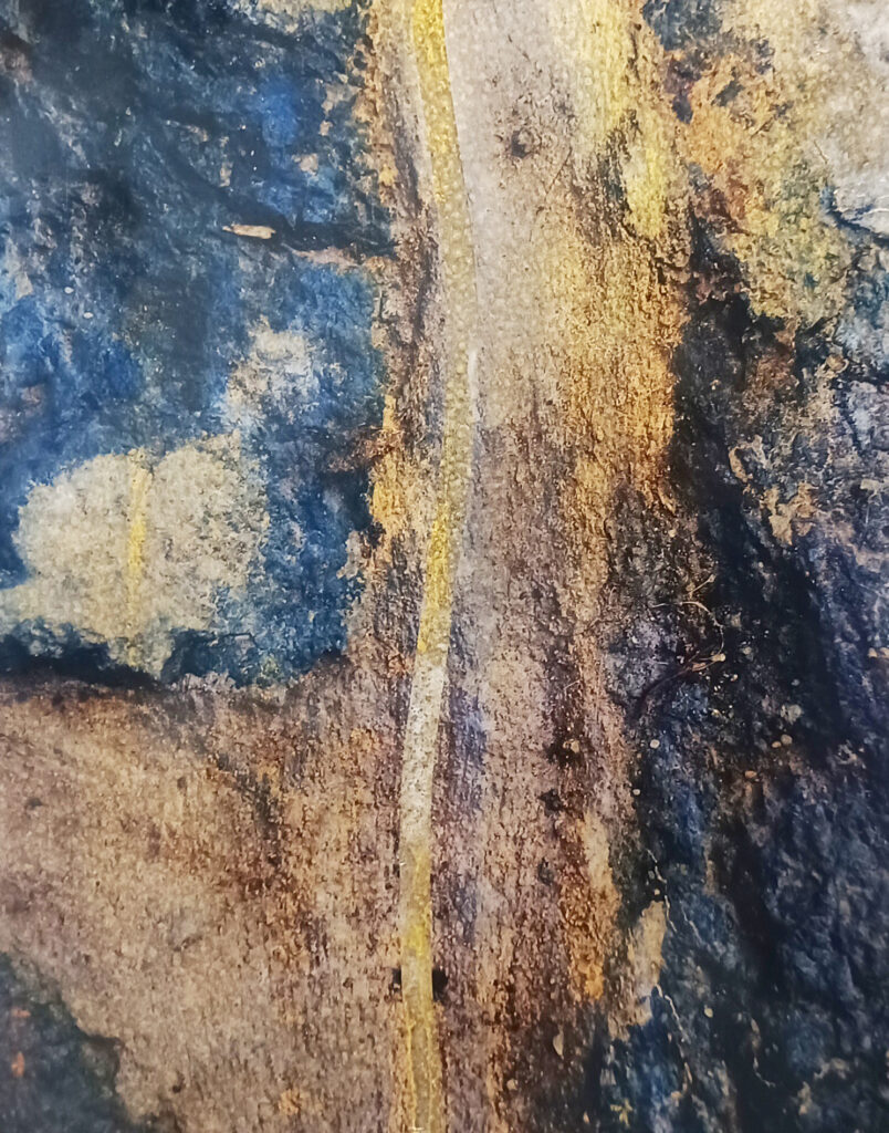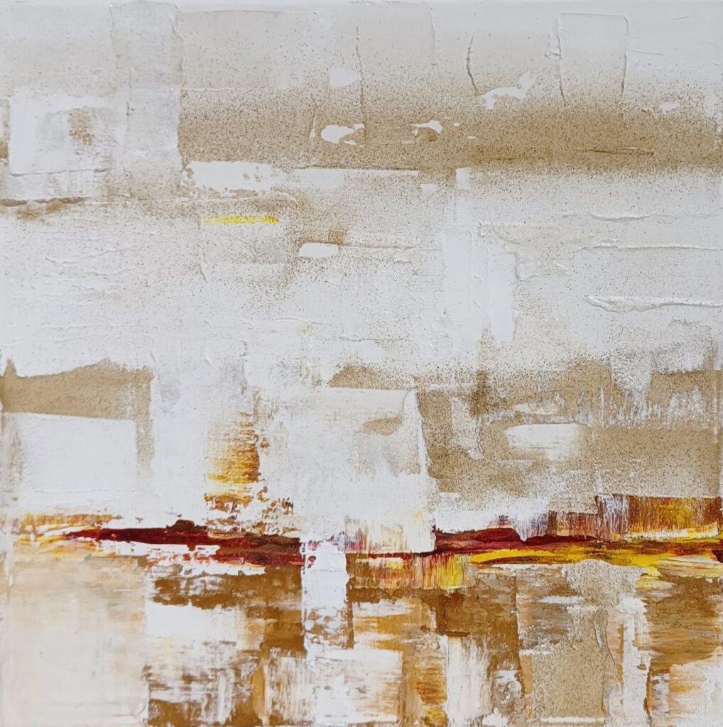 Technika: ásványpor, hamu, akril, arany pigment, plexi