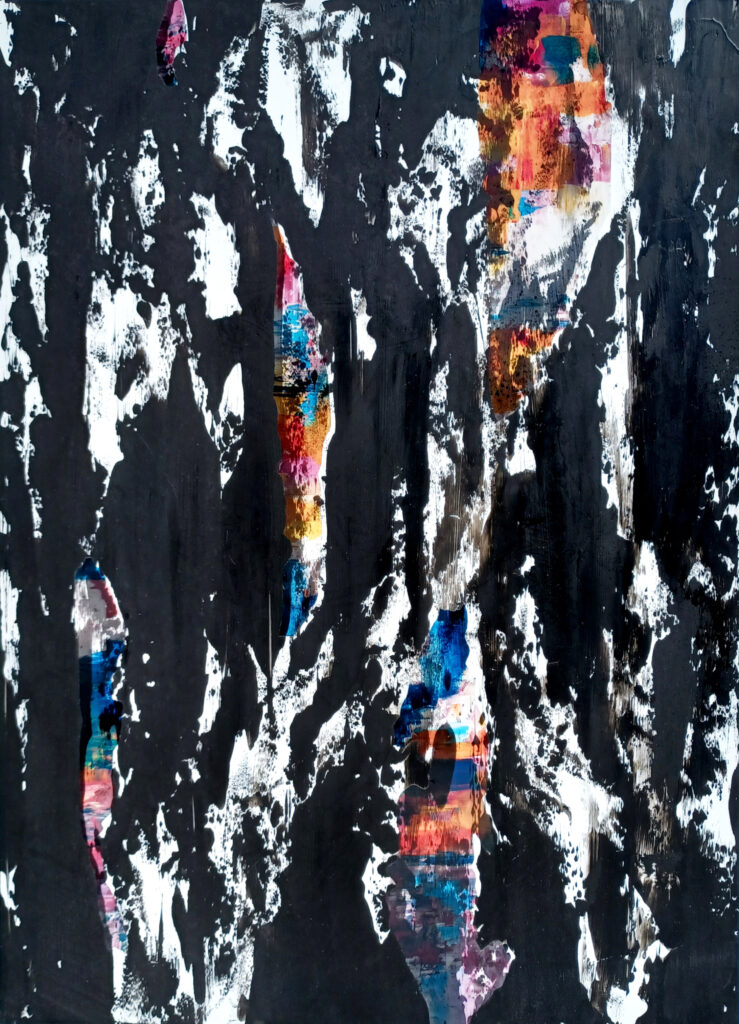 A polaritás-egység elvén, különféle anyagok és textúrák kísérleti alkalmazása során festészeti, grafikai és digitális technikával dolgoztam, ezek összhatását vizsgáltam. Differens anyagok ütköztetésével, transzparens és átlátszatlan médiumokkal, véletlenszerűen létrehozott felületeken fotóimat, festményeimet helyeztem új kontextusba. Ez a munkafolyamat eredményezte a “Mátrix” c. installációs munkát is, mellyel együtt, összességében 46 db alkotás készült.